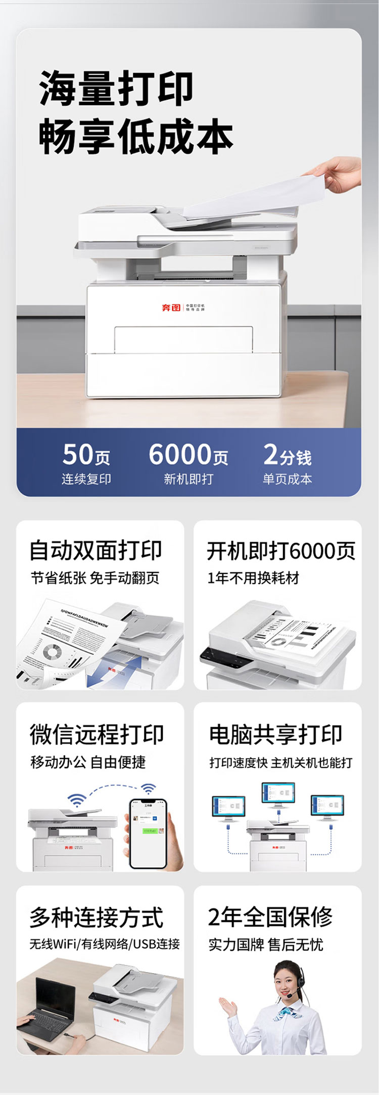 复印、打印、扫描多合一,50页连续复印扫描