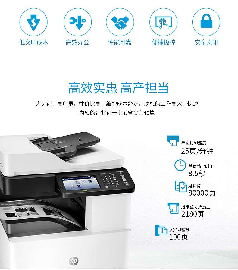 速度:25页/分钟,标配送稿器、双面打印、网络