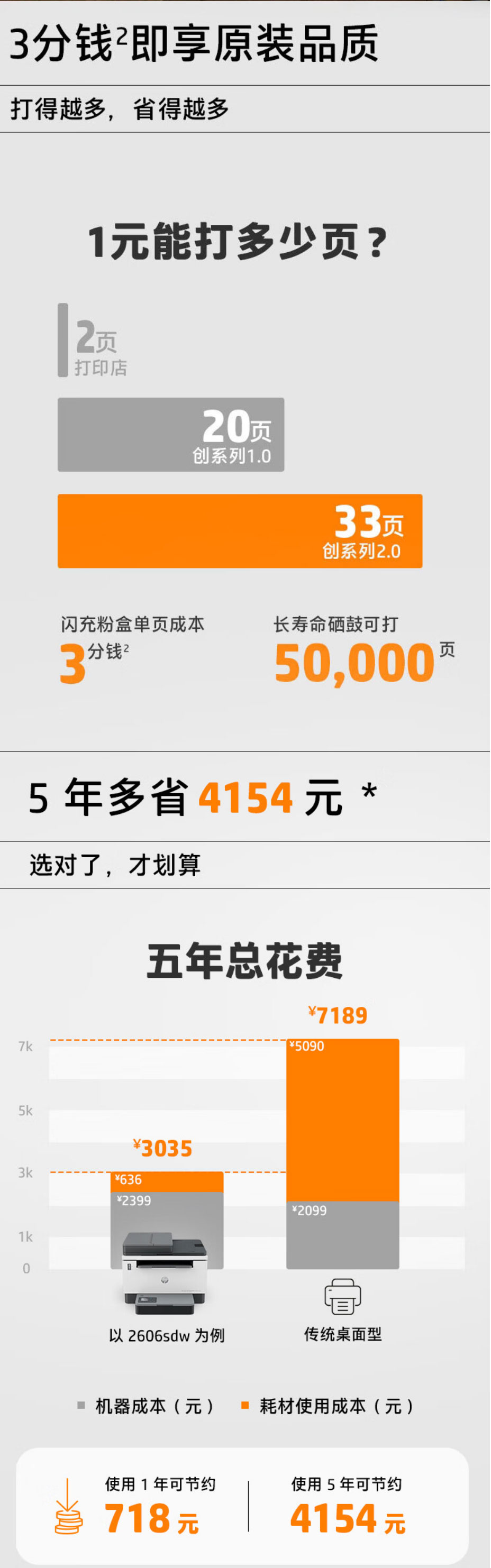 原装碳粉,单页成本低至5分